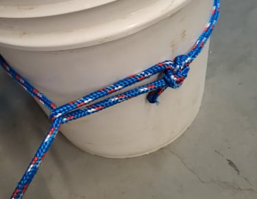 This is a method to use a Bowline knot to cinch down on something or anchor. You can either tie a normal bowline and then pull the standing line through the loop to put around something. Or, if you don't have an end, like a tree or a pole, you can wrap the rope around the object, and then tie bowline with the standing end of the rope in the loop.