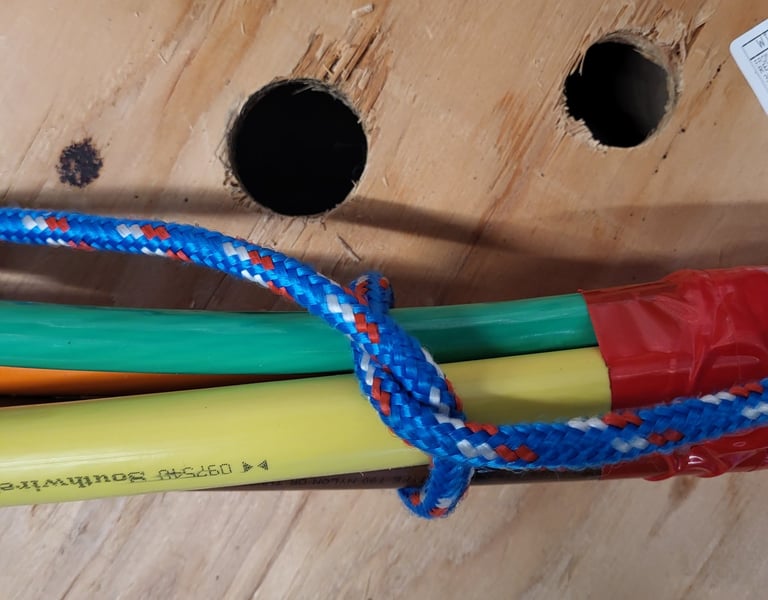 The knots and techniques demonstrated on this site are intended strictly for material handling, wire pulling, and equipment securement. > Never use these hitches and knots for life safety, fall protection, or overhead lifting of loads where a failure could result in injury or death. Always use OSHA-compliant, load-rated hardware (harnesses, shackles, and slings) for critical lifts. Your safety team is there for a reason—consult them for high-risk tasks. Master the craft, stay out of pinch points, respect the load, and live to tie knots another day.