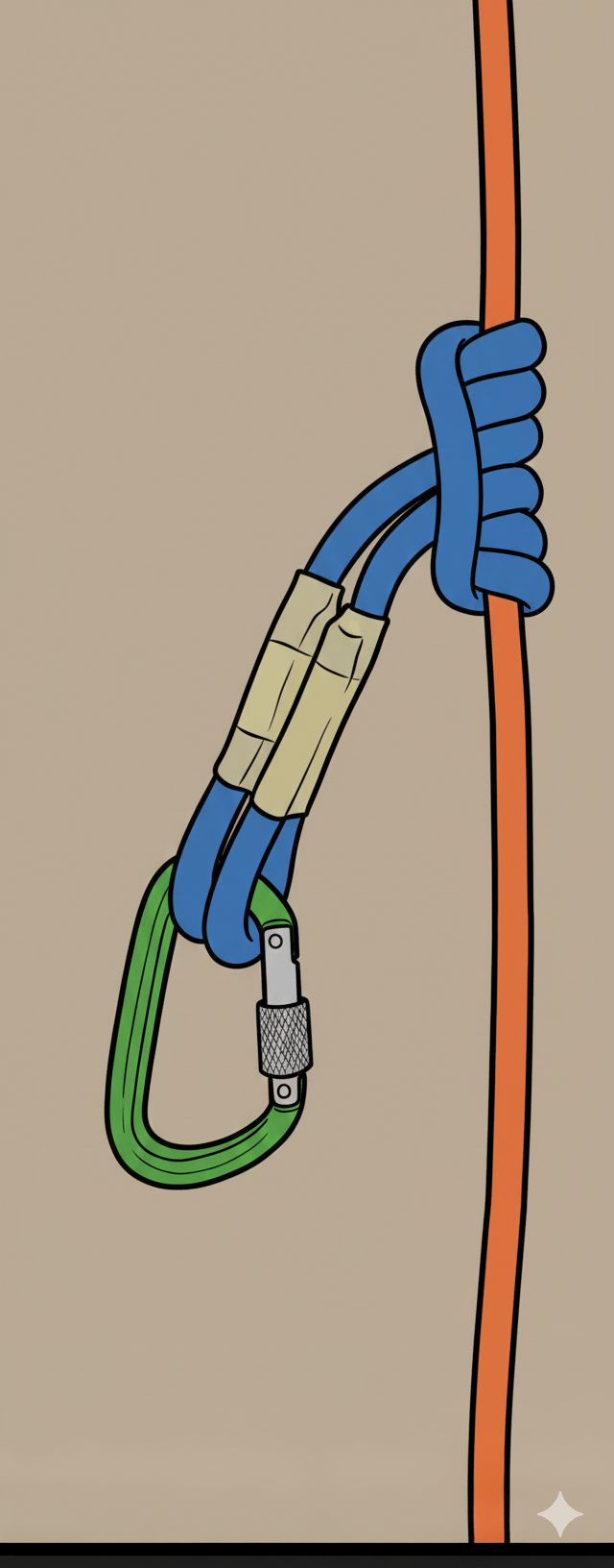 This is the original friction hitch that was designed for arborists and other rope climbers. It can hold strain in either direction, unlike the Schwäbisch Hitch or Icicle Hitch. However, in the Electrical field it has limited uses as our pulling forces are primarily in a single direction.