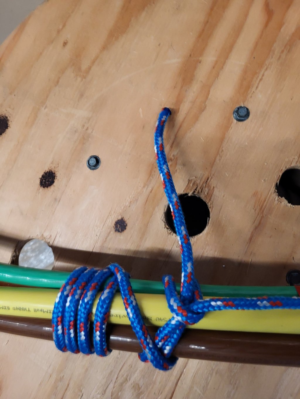 Alright, this is the juicy part... You've been pulling wire, the tugger is humming and the wire head has just popped out of the conduit, perfect! But... you need 15 feet more wire to route through the switchgear and hit the circuit breaker. You can't just crimp a pulling eye in the middle of the wire and your fancy woven sock isn't gonna work now either. Let's begin the real ropework... these are the pulling hitches wiremen can use to save the day.